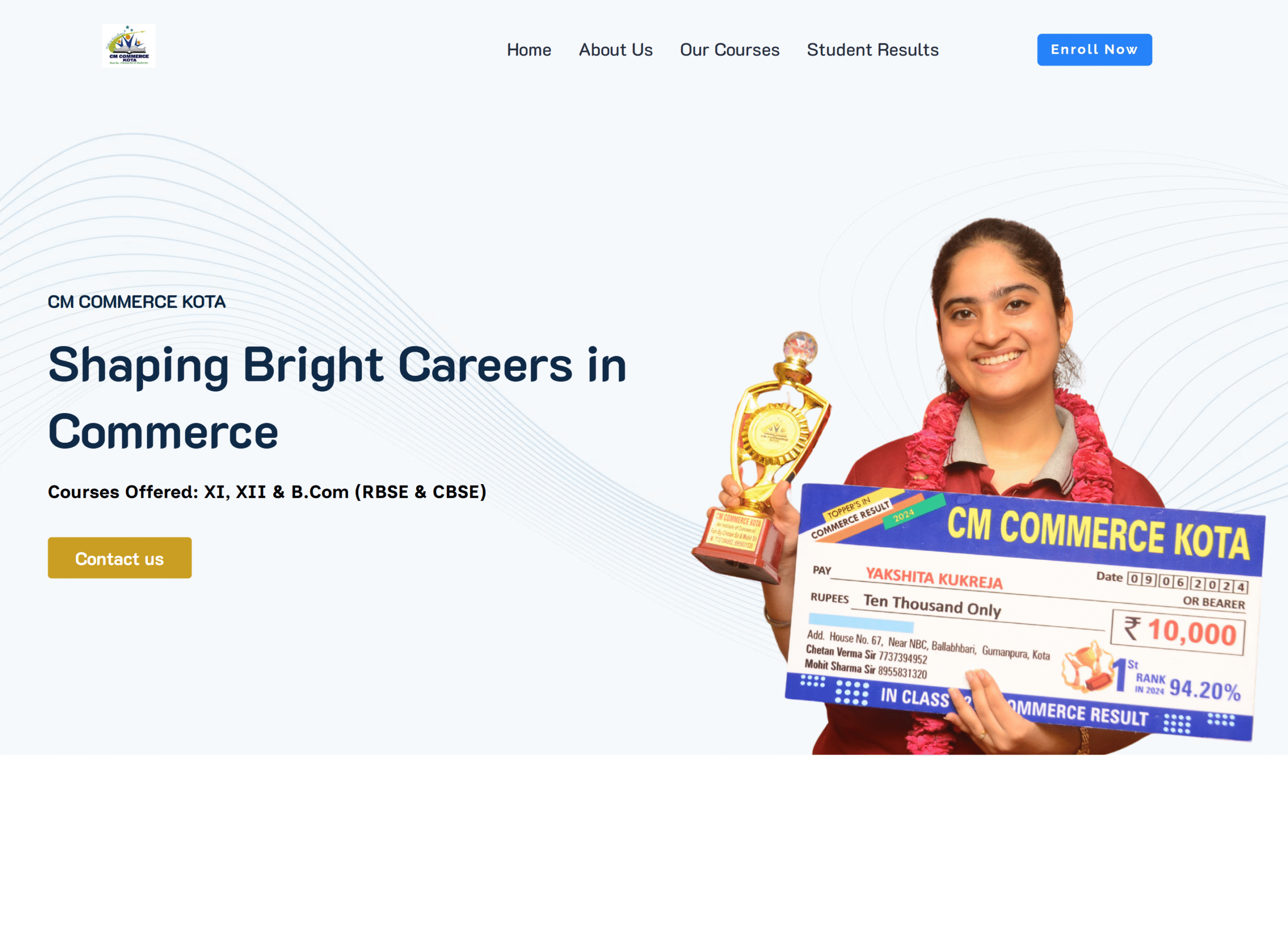 An informative, mobile-friendly website showcasing courses, student achievements, enquiry form, and details.