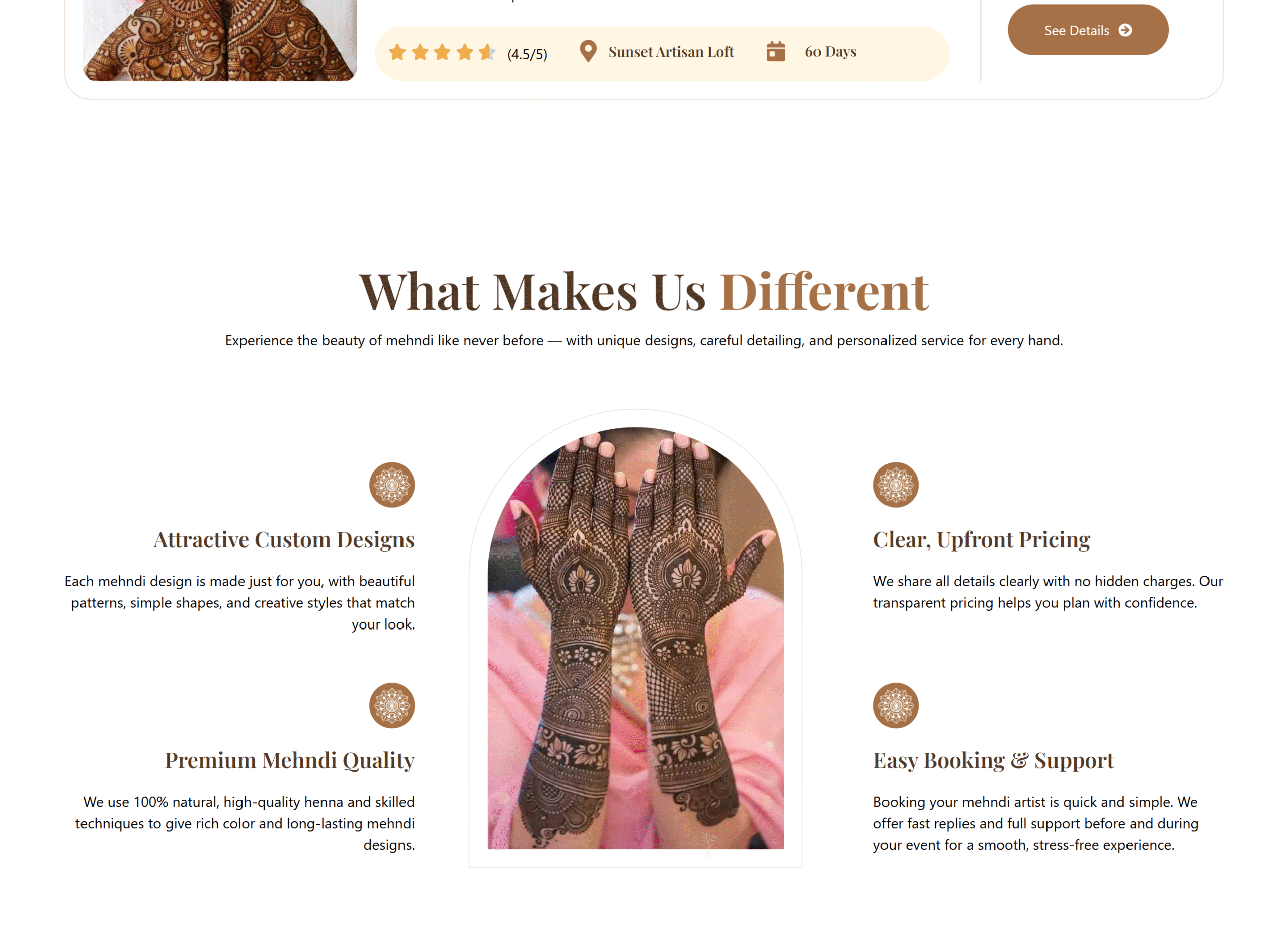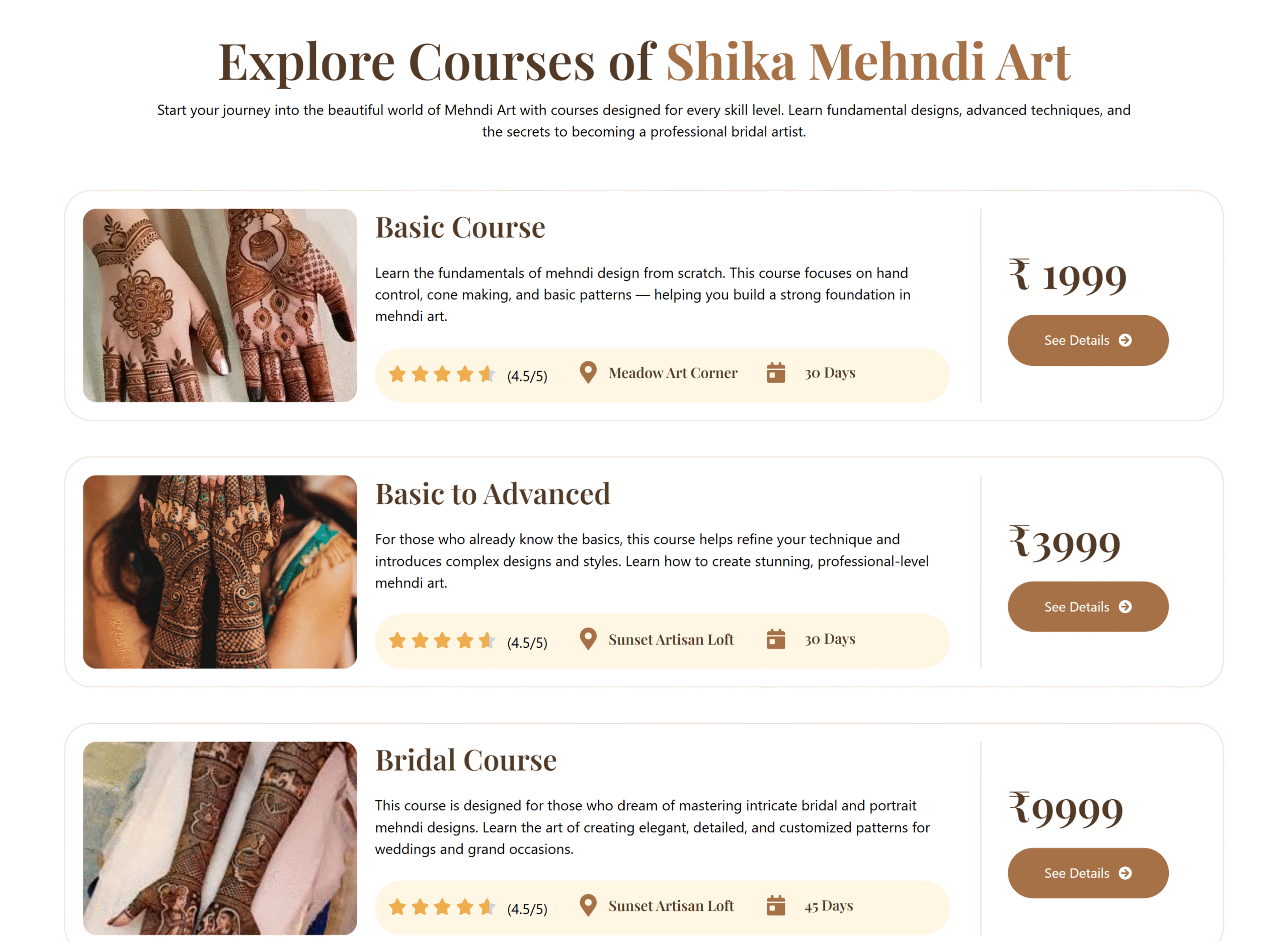 Crestia Creative designed and developed the Shika Mehndi Art website using WordPress, combining elegance with functionality. The goal was to create a visually appealing platform that showcases Shika’s artistic mehndi work while making it easy for clients to learn, explore, and connect.